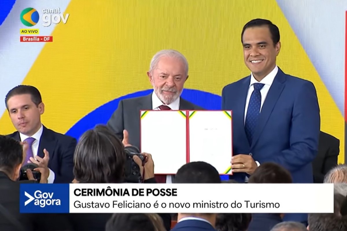 Gustavo Feliciano toma posse como novo ministro do Turismo em cerimônia com Lula, Alckmin e líderes do Congresso. Discurso destaca inclusão, continuidade e fortalecimento do turismo brasileiro.
