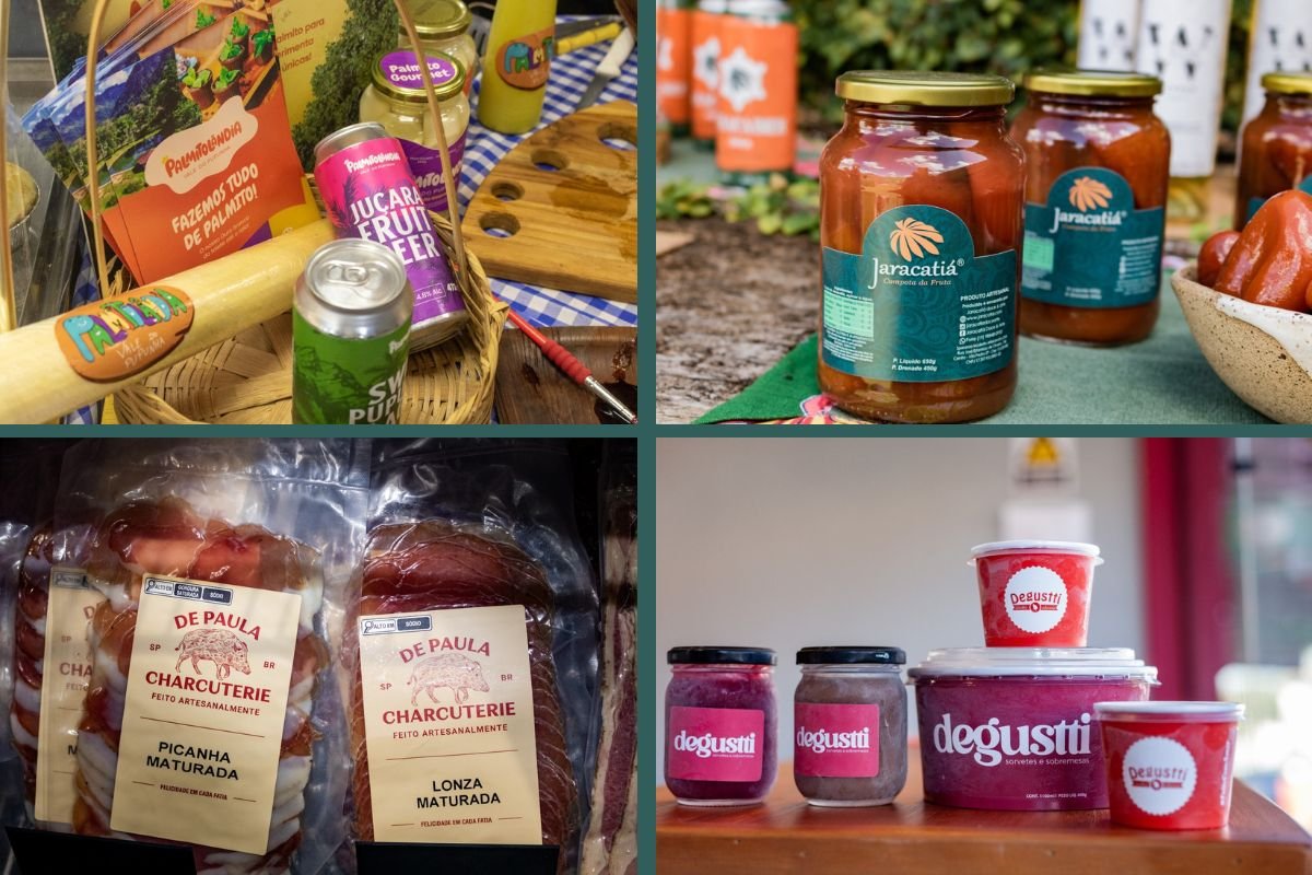 Entre os destaques estão produtores como a Palmitolândia, de Iporanga, com derivados de palmito; Azeites Rossini, de Santo Antônio do Pinhal; De Paula Charcuterie, de Ibiúna; Fazenda Atalaia, de Amparo, reconhecida pelos queijos artesanais; e a Tosta Coffee Roaster, de Garça, com cafés especiais. Também participam marcas como Danega Conservas, de Presidente Prudente, e Mavic Biscoitos, de São José do Barreiro, reforçando a diversidade da produção regional.