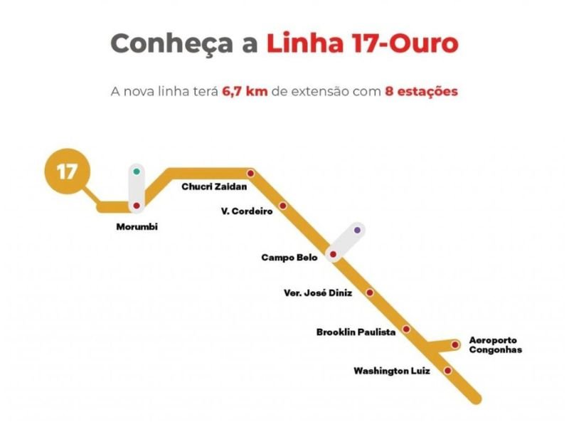 A proposta da Linha 17-Ouro vai além da conexão com o transporte aéreo. O projeto inclui integração com outros modais urbanos, com previsão de baias para ônibus, ciclovia, paraciclos com capacidade para 35 bicicletas e áreas organizadas para embarque e desembarque de veículos.