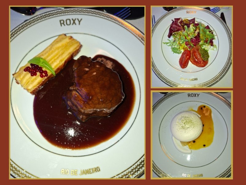 A gastronomia do Roxy Dinner Show é um espetáculo à parte, a casa oferece três opções de uma experiência gastronômica fantástica: Aquele Abraço, Copacabana, Rio de Janeiro com valores que vão de R$ 396 a R$ 869 para o pacote completo. O menu que exalta a gastronomia autoral brasileira é assinado pelo chef Danilo Parah.