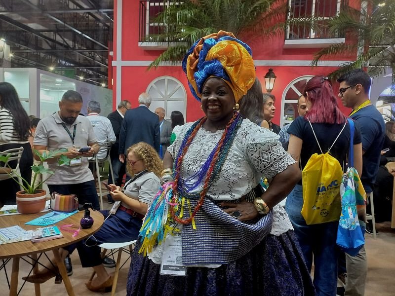A famosa baiana, Lucicleide Nascimento trouxe ao estande baiano toda a positividade e a alegria do povo da Bahia – Crédito – Dalton Assis – AC News
