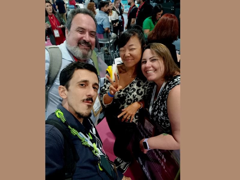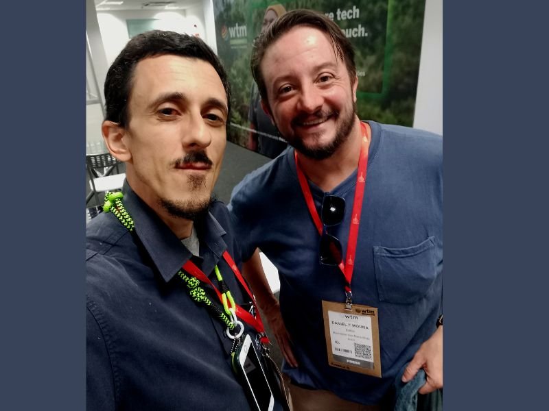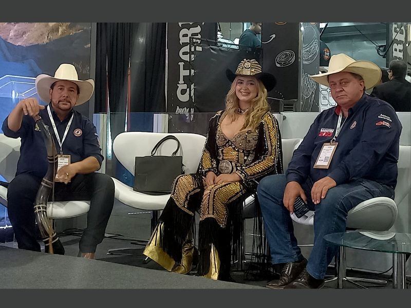 Paulinho 1001, locutor de rodeios de Barretos (SP) (a direita) marcou presença na WTM-LA 2025 com seus amigos – Crédito – Dalton Assis – AC News